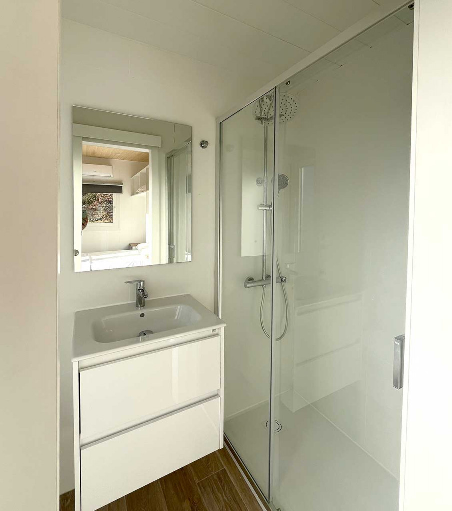 Nuestras tiny houses estarán disponibles próximamente para campings urbanos como Camping Osuna, ofreciendo una solución moderna y eficiente para quienes buscan diversificar su oferta de alojamiento. Diseñadas para optimizar el espacio, cada unidad está equipada con baño completo, cama doble, y opciones adicionales para maximizar la experiencia del huésped. Perfectas para campings que deseen captar a un público urbano y moderno. ¡Haz crecer tu negocio con nuestras tiny houses!
