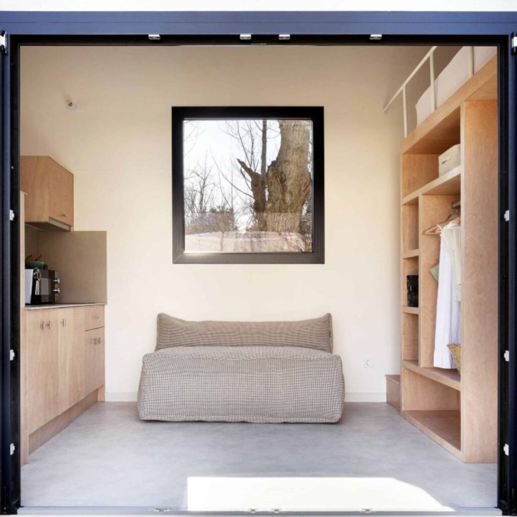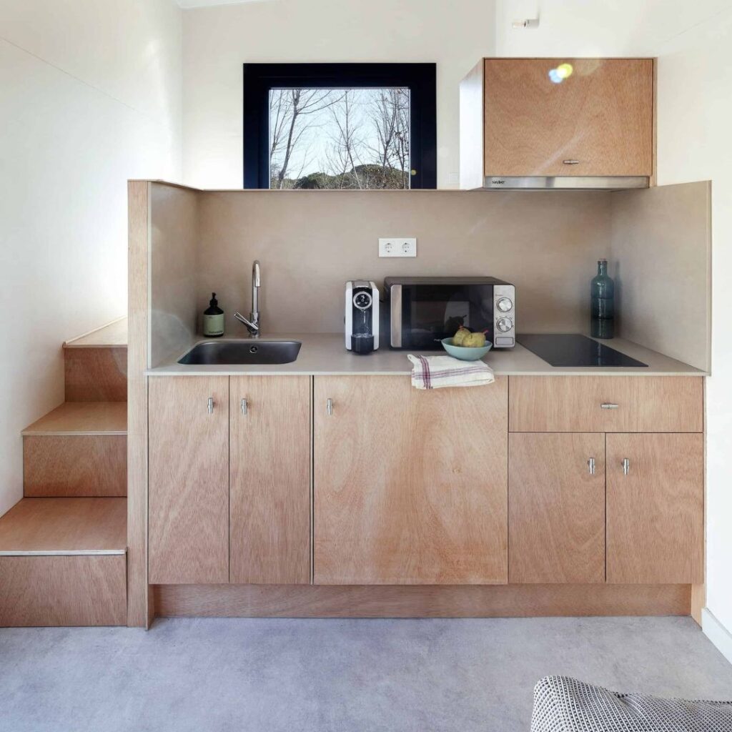 Nuestro modelo en Wecamp Cudillero está diseñado para quienes buscan descanso y comodidad en un entorno práctico y funcional. Con capacidad para 4 personas, cuenta con un baño completo y una distribución eficiente que maximiza el espacio disponible. Ideal para campings que desean ofrecer una experiencia acogedora y confortable.